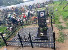 Брусчатку замываем водой: пескобетон размокает, превращаясь в надёжный скрепляющий раствор. На этом наши работы на могиле закончены, клиент выразил благодарность за оперативность и качество оказанных услуг.